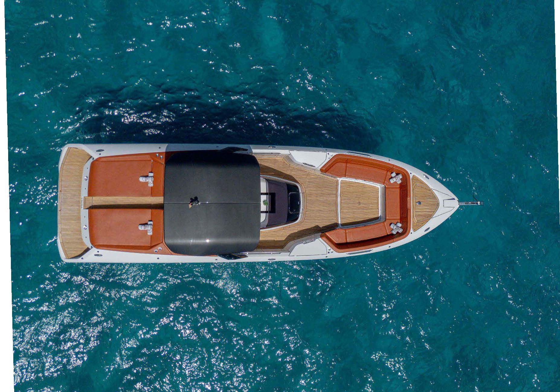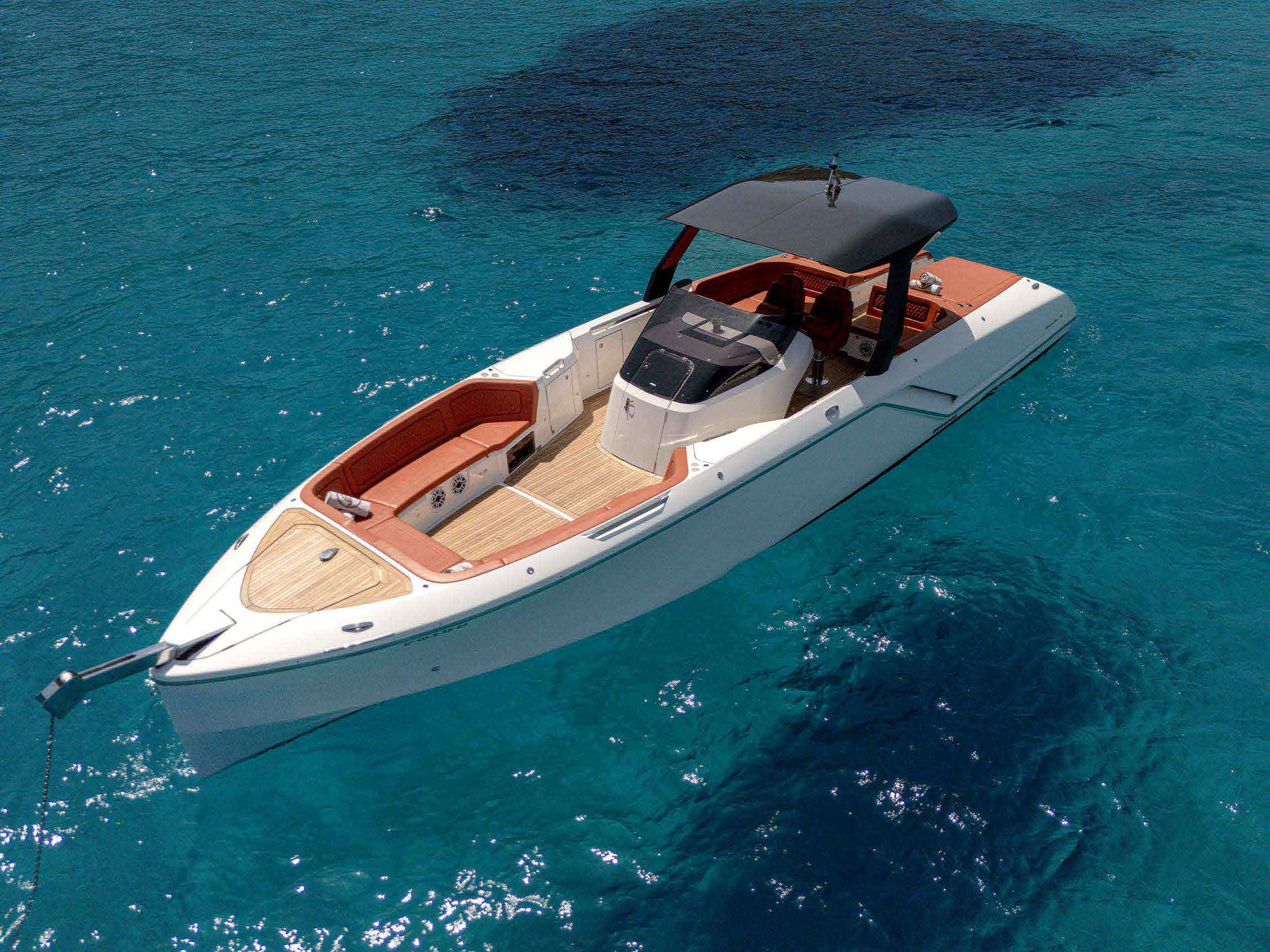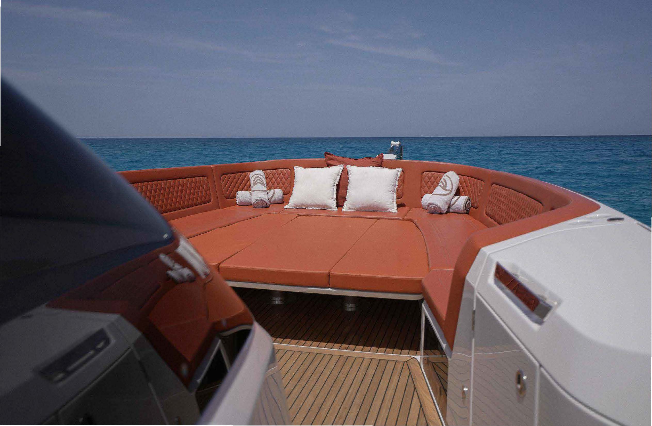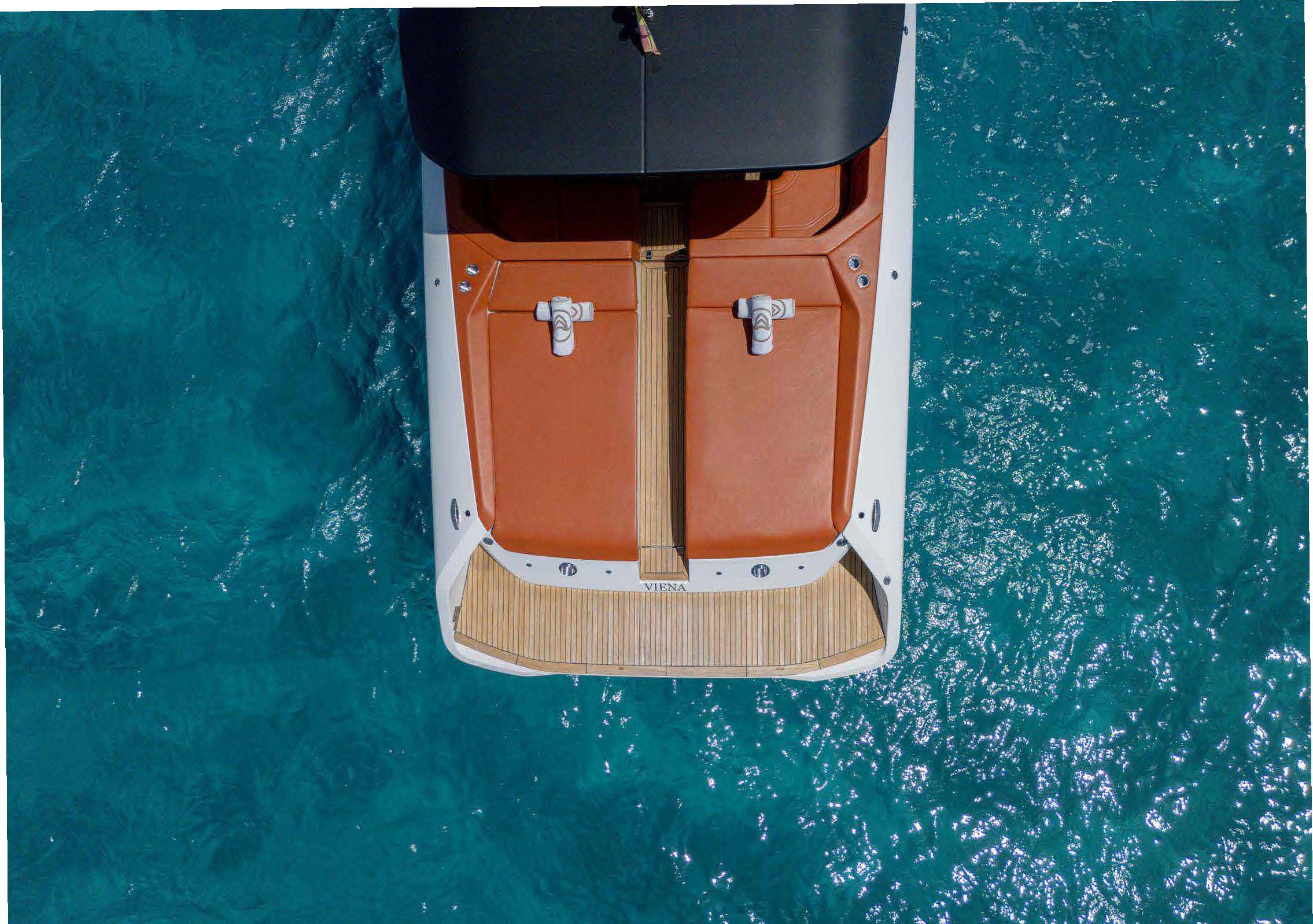 • General: Sunshade, front and back sunbeds, exterior sitting area, WC, Bluetooth music connection, no A/C