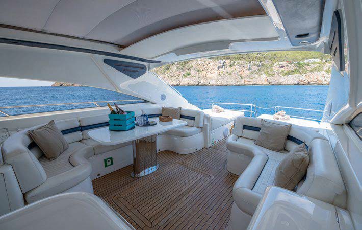 - Included: Captain, deckhand, stewardess, insurance, towels, complimentary drinks (water, ice, 24 soft drinks, 18 beers, 2 white wine, 2 rosé, 2 cava, 1 Champagne), snacks, fruit, snorkelling equipment, 2 paddle boards, 1 seabob, jet ski, inflatable toys