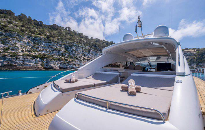 - Included: Captain, deckhand, stewardess, insurance, towels, complimentary drinks (water, ice, 24 soft drinks, 18 beers, 2 white wine, 2 rosé, 2 cava, 1 Champagne), snacks, fruit, snorkelling equipment, 2 paddle boards, 1 seabob, jet ski, inflatable toys